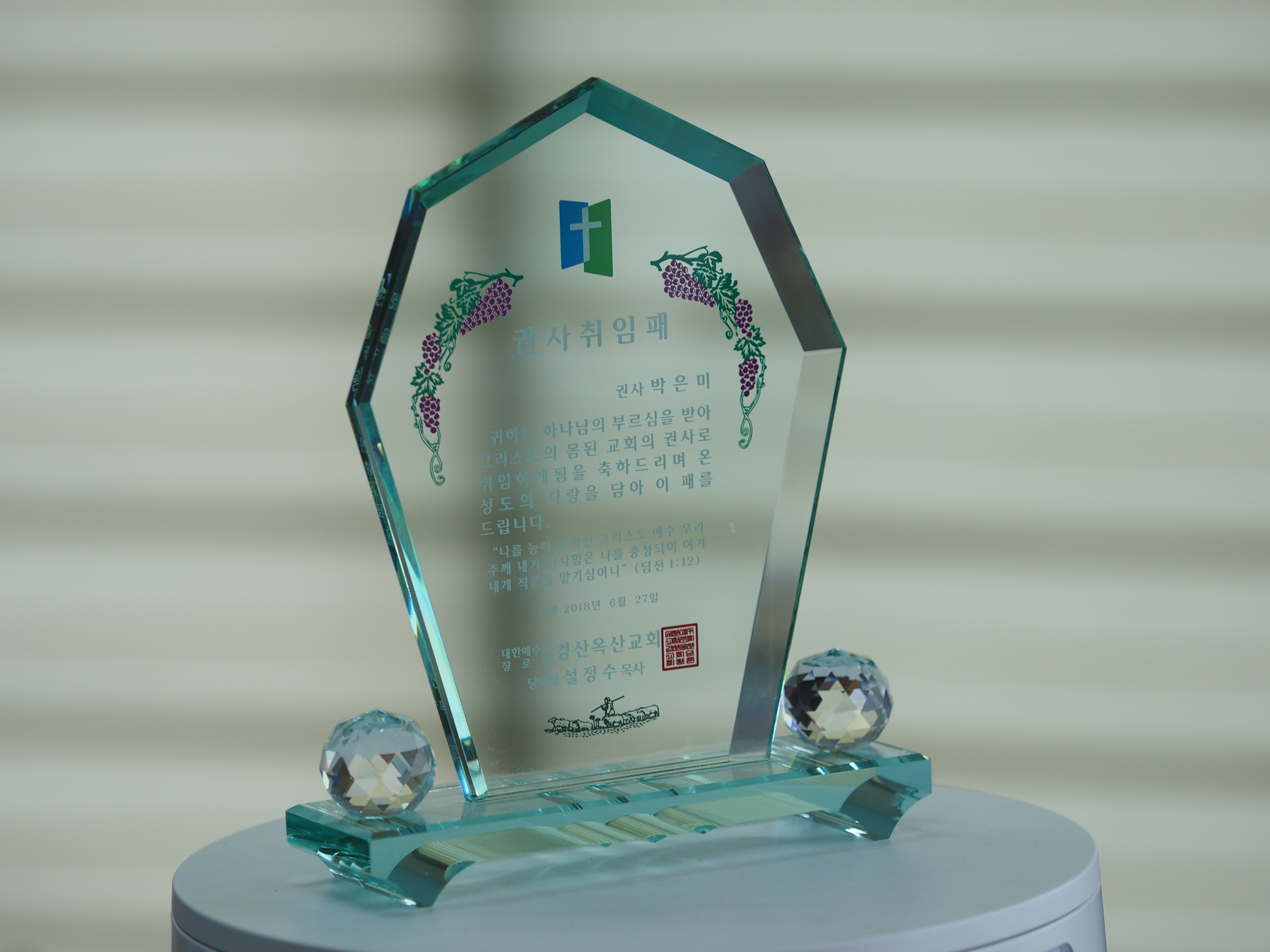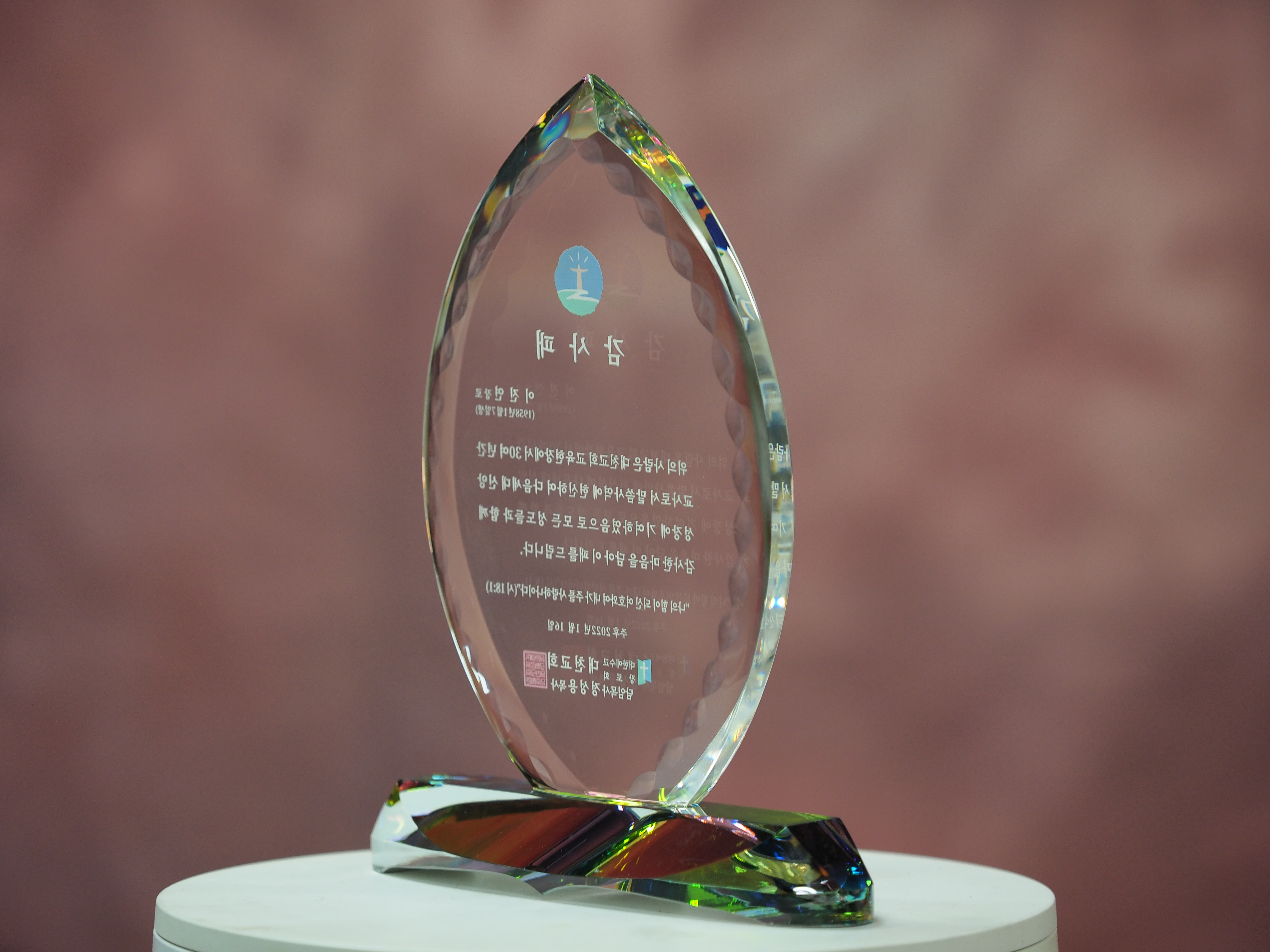 보통 교회감사패의 경우, 기념이 되실 수 있게 크리스탈의 컬러를 섞기도 하며