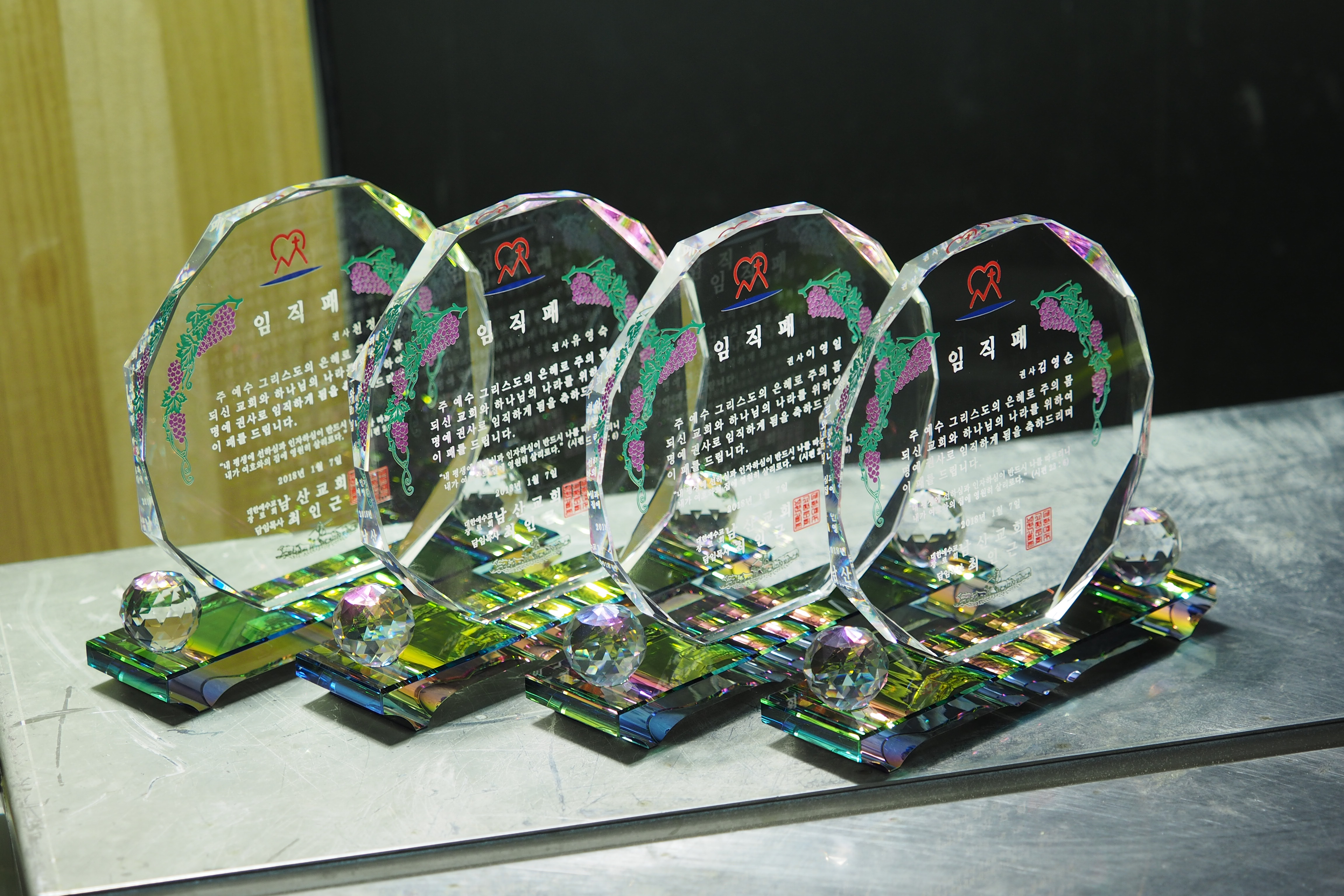 교회임직패의 경우 고급스럽고 반짝이는 투명 크리스탈을 선택하시기도 하고